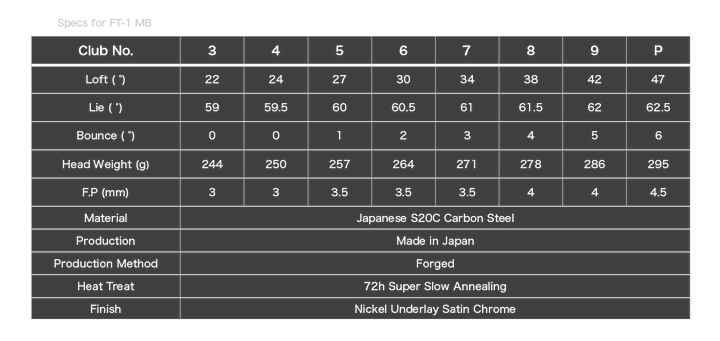 The Fujimoto Mini Blades started as a way to practice with a smaller clubhead to work on solid contact. They've now evolved into full sets for play on the course! These heads maintain the 270g head weight for a seamless transition between standard irons and the mini blades making them easier to switch between sets. These clubs also go through Fujimoto's famous annealing process to ensure a buttery soft feel.